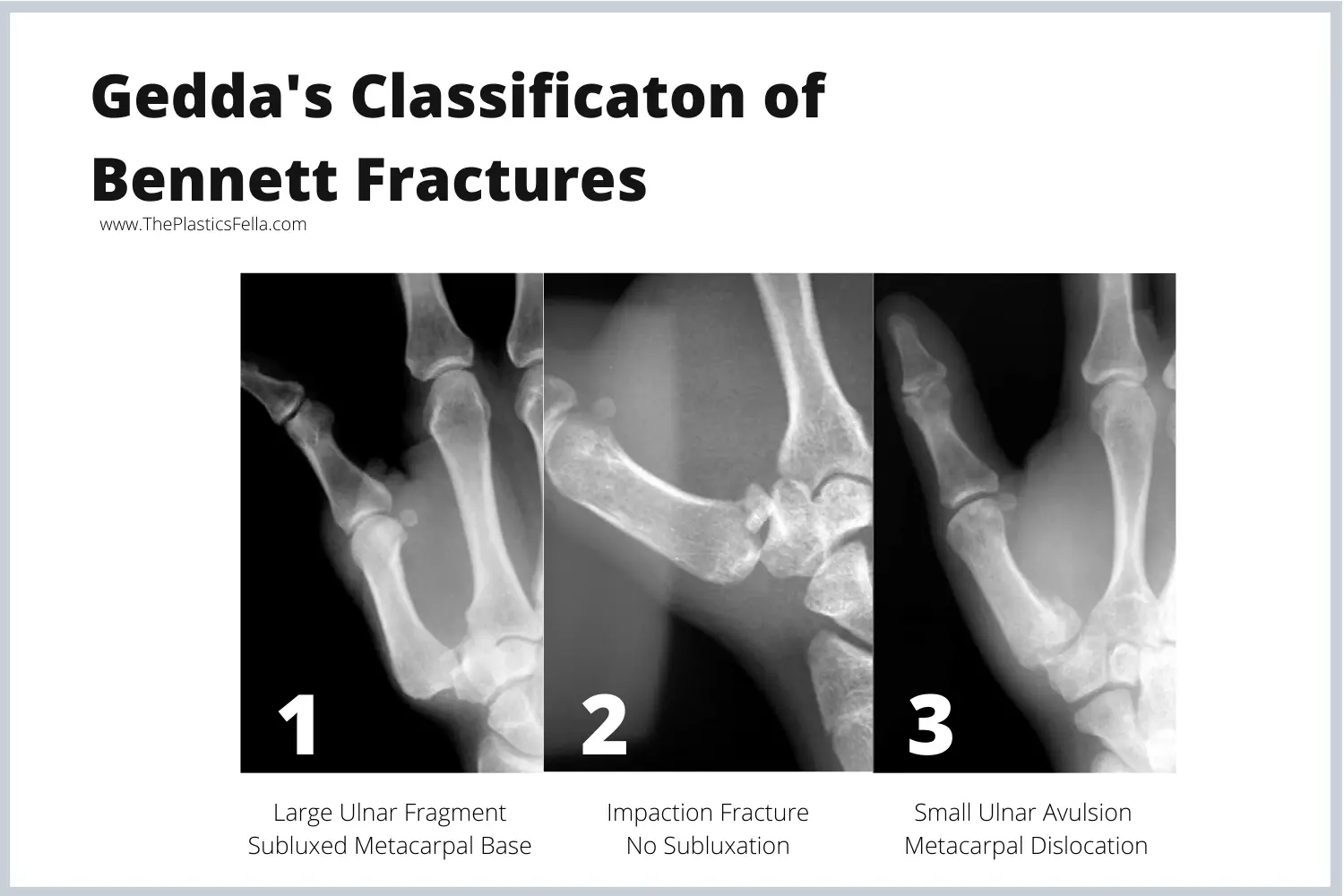 - 3. GEDDA K. Studies on Bennett’s fracture; anatomy, roentgenology, and therapy. Acta Chir Scand Suppl. 1954;193:1-114. https://www.ncbi.nlm.nih.gov/pubmed/13188578.