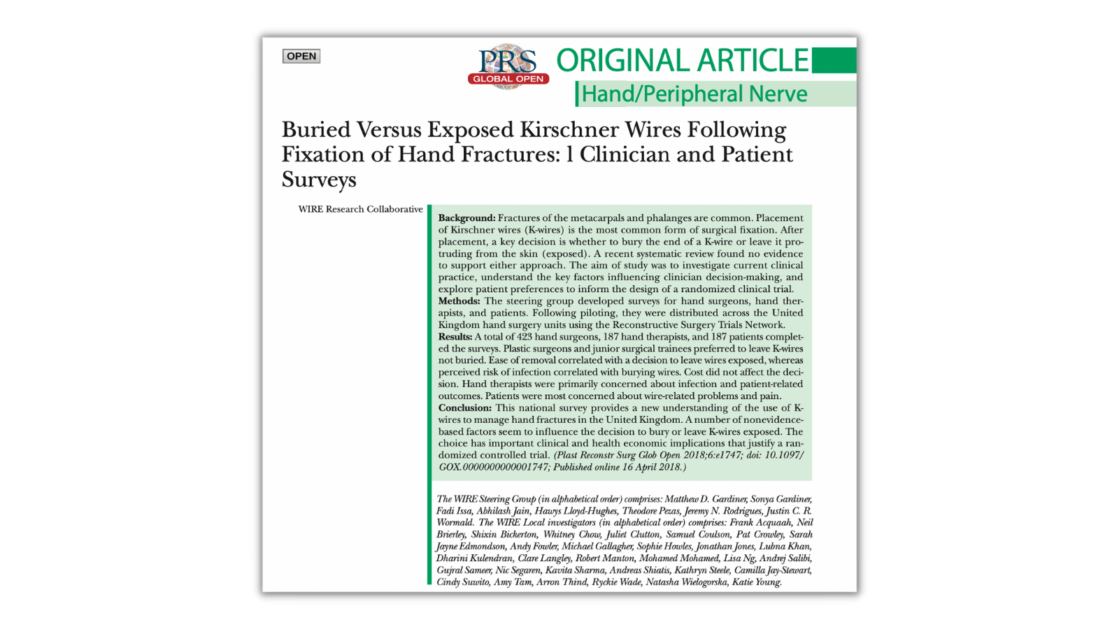 This PRS Global Open Publication in 2018 by the WIRE Research Collaborative provides insight into the attitudes and decision-making behind the question - should we bury K-wires? It's worth reading the entire article here.