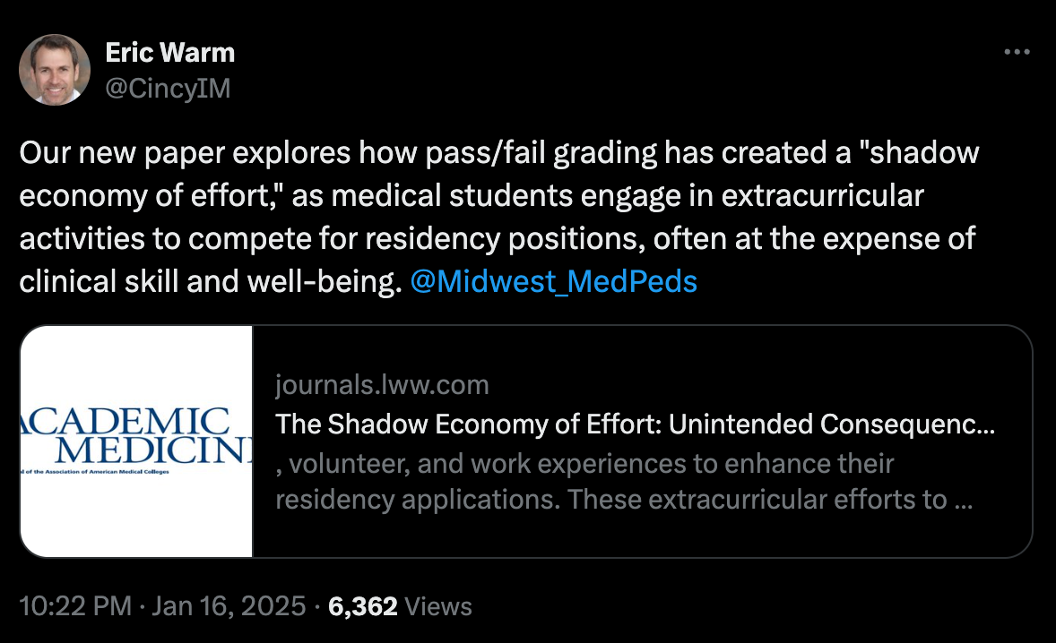 Now, students are forced into a shadow economy of extracurricular effort to survive an arms race that does nothing to make them better doctors. They’re churning out abstracts, stacking volunteer experiences, and competing on a spreadsheet — not in the clinic, where it actually matters.