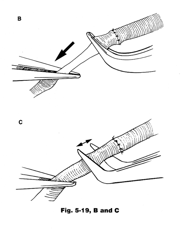 2. Use a second pair of forceps to empty a segment of the vessel.