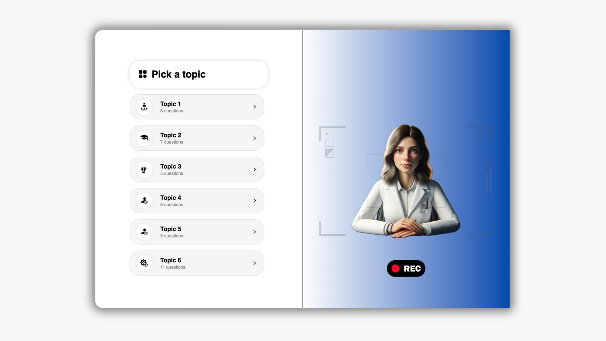 - โฝ Live Mock Practice: Practice with past interview questions using a webcam. Record and improve your technique.