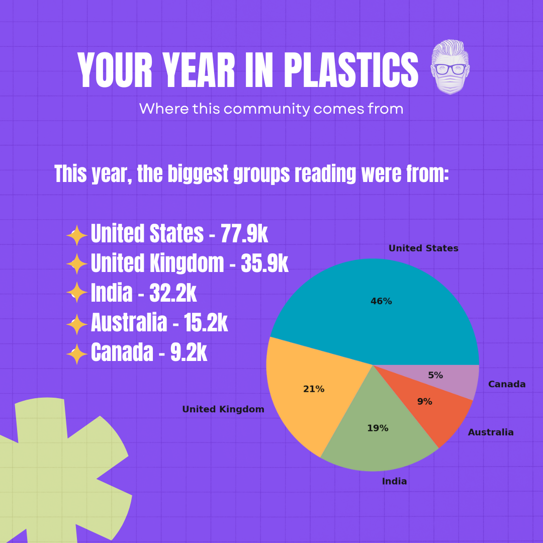 In 2025, thePlasticsFella’s reach was unmistakably global. The largest audiences came from the United States, United Kingdom, India, and Australia, followed by Turkey, Canada, Mexico, Brazil, and Malaysia.