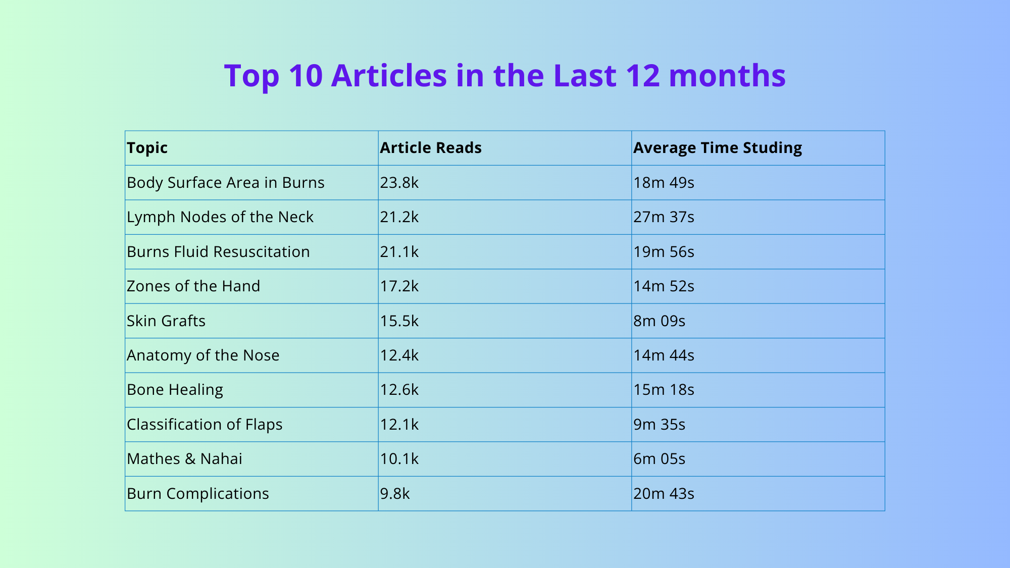 Once users get onto the platform, you dive into a wealth of resources. Over the past 12 months, certain articles have stood out as the most popular, reflecting key areas of interest and need within the plastic surgery community.