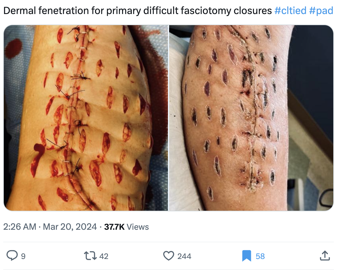 โข Blood Supply: Reduced+++. The common indication for this technique (apparently) is post-fasciotomy. We all know this incision opens up the fascia - so the fascial blood supply is already compromised. This further affects dermal supply.