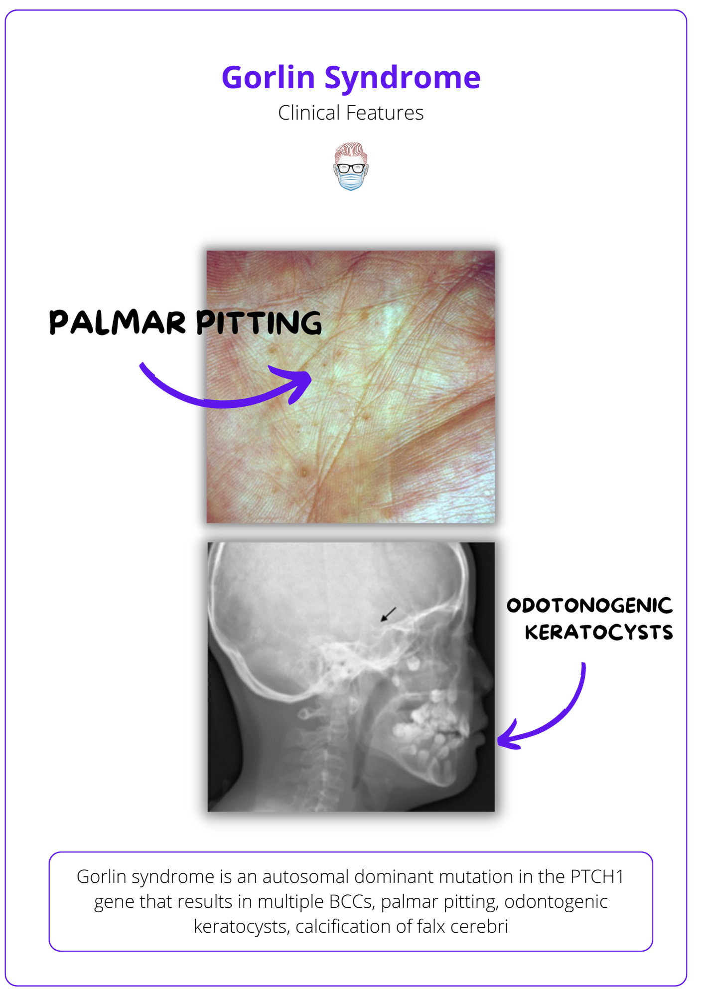 Some of the clinical features of Gorlin syndrome are illustrated below