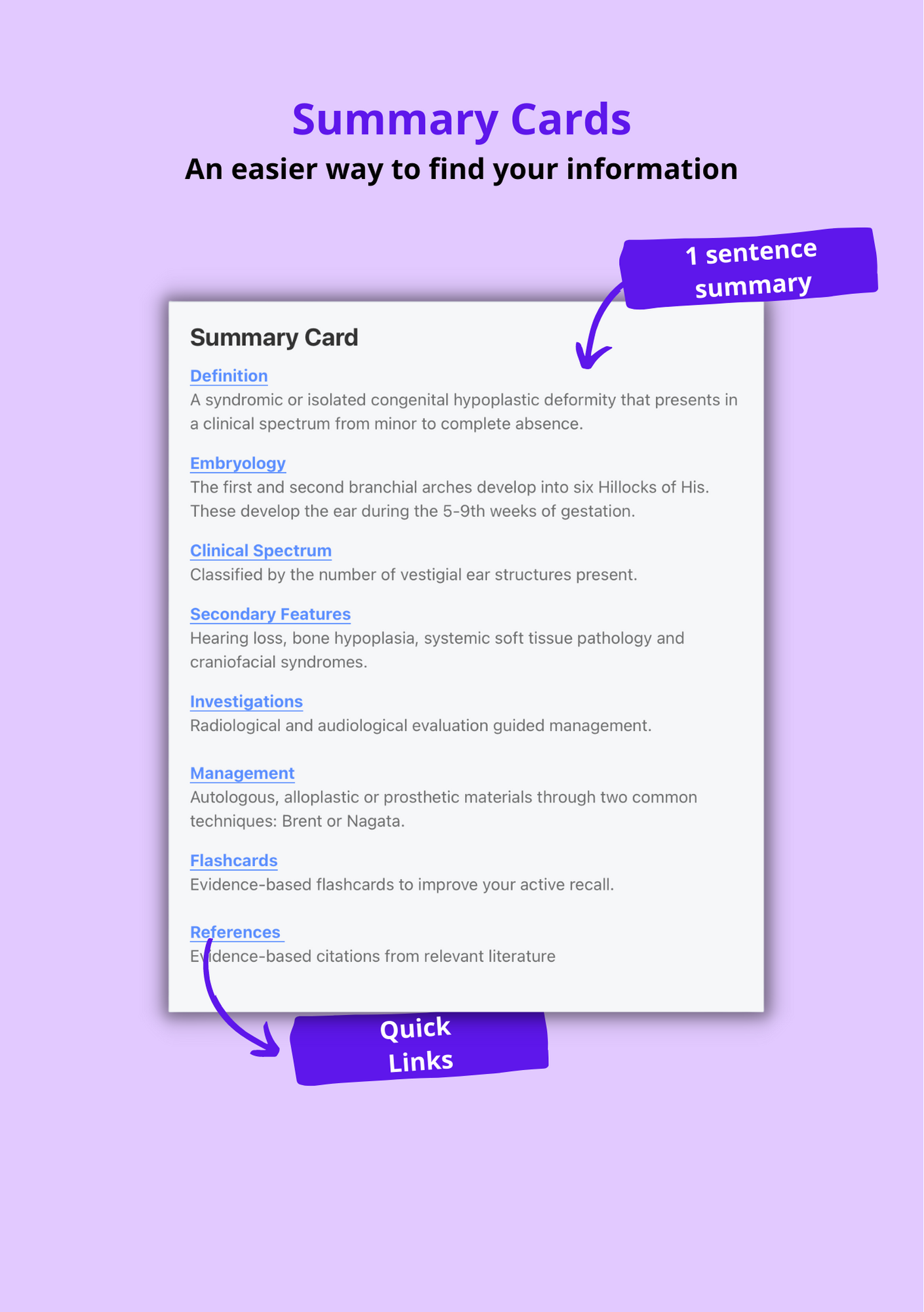 At the top of each article, there is a summary card that provides a single-sentence summary for each of the main sections on that topic. There is also a link which means you can skip straight to the part you want to read!