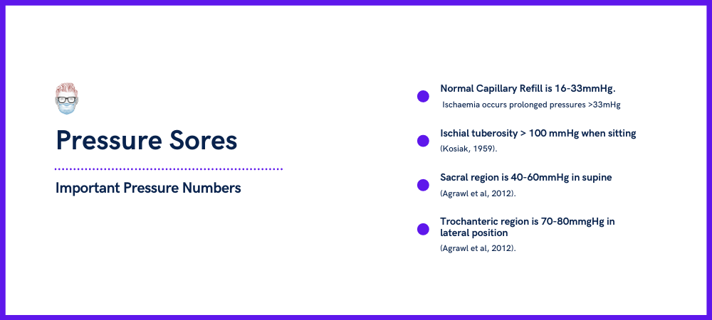 - Sacral region is 40-60mmHg in supine (Agrawl et al, 2012).