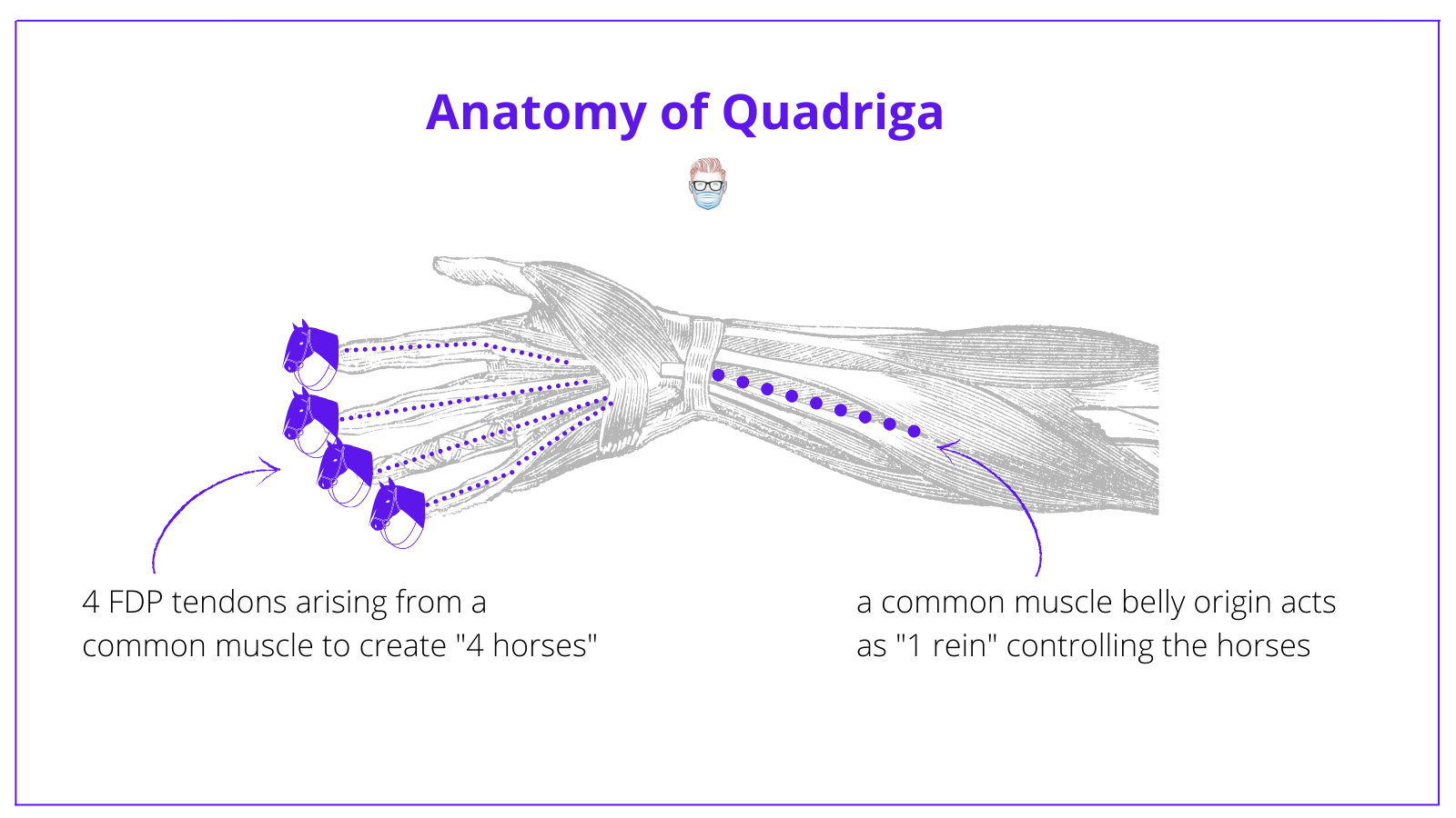 The quadriga phenomenon is frequently attributed to the common muscle belly of the FDP. However other factors, such as the interconnections between the FDP tendons, maybe even more important1.