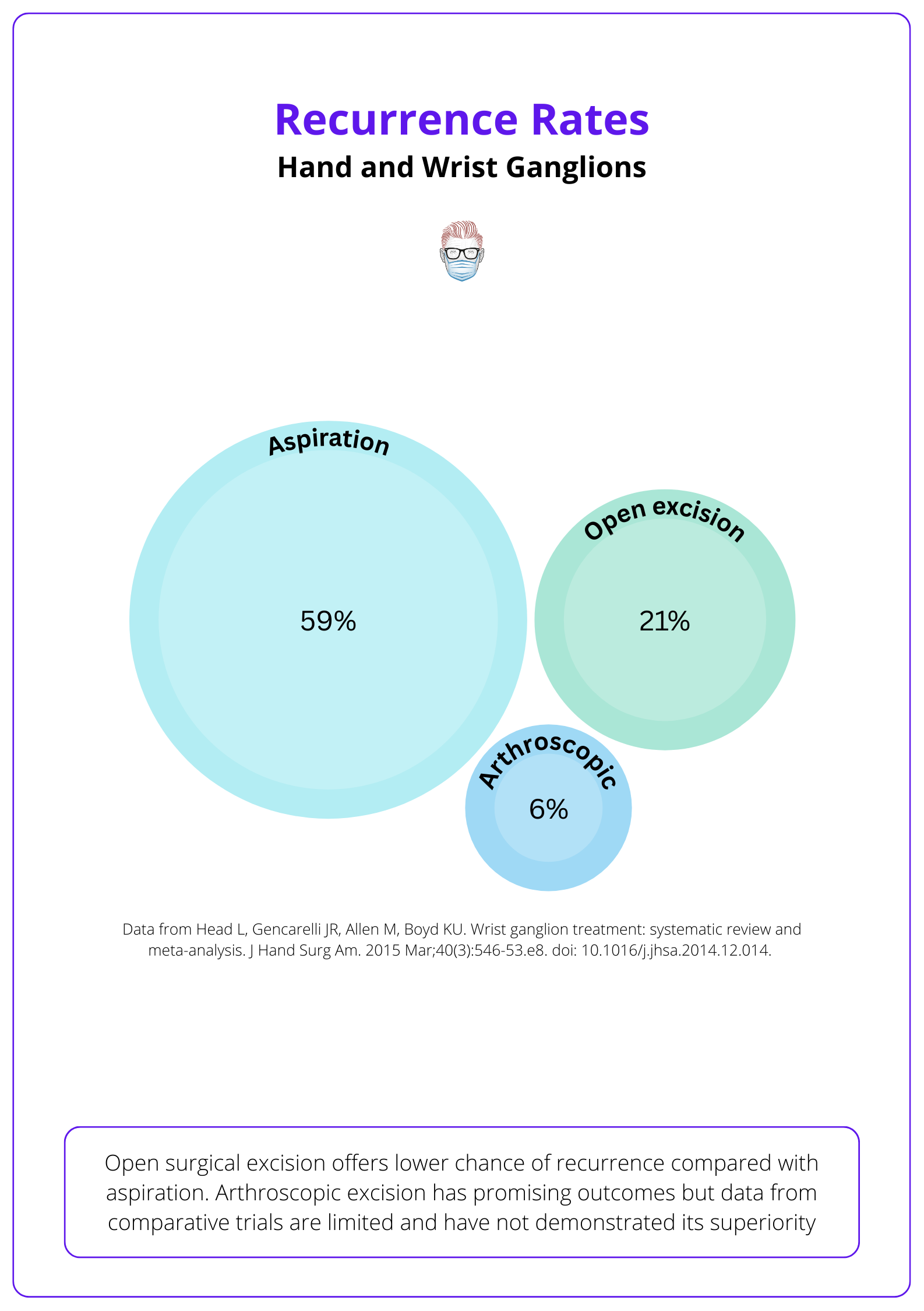 Head L et al. Wrist ganglion treatment: systematic review and meta-analysis. J Hand Surg Am. 2015 Mar;40(3):546-53.e8. doi: 10.1016/j.jhsa.2014.12.014. - How often do ganglions self-resolve?