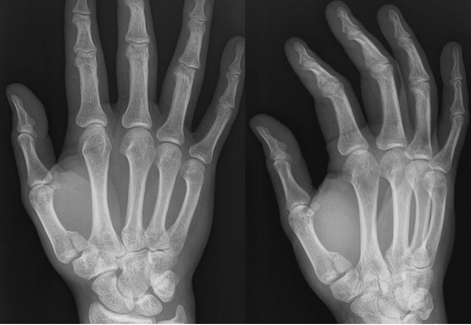 This 40-year-old male presented to the emergency department after punching another man. He felt he didn't quite time the punch correctly and his thumb connected first. The radial aspect of his hand is swollen and painful.