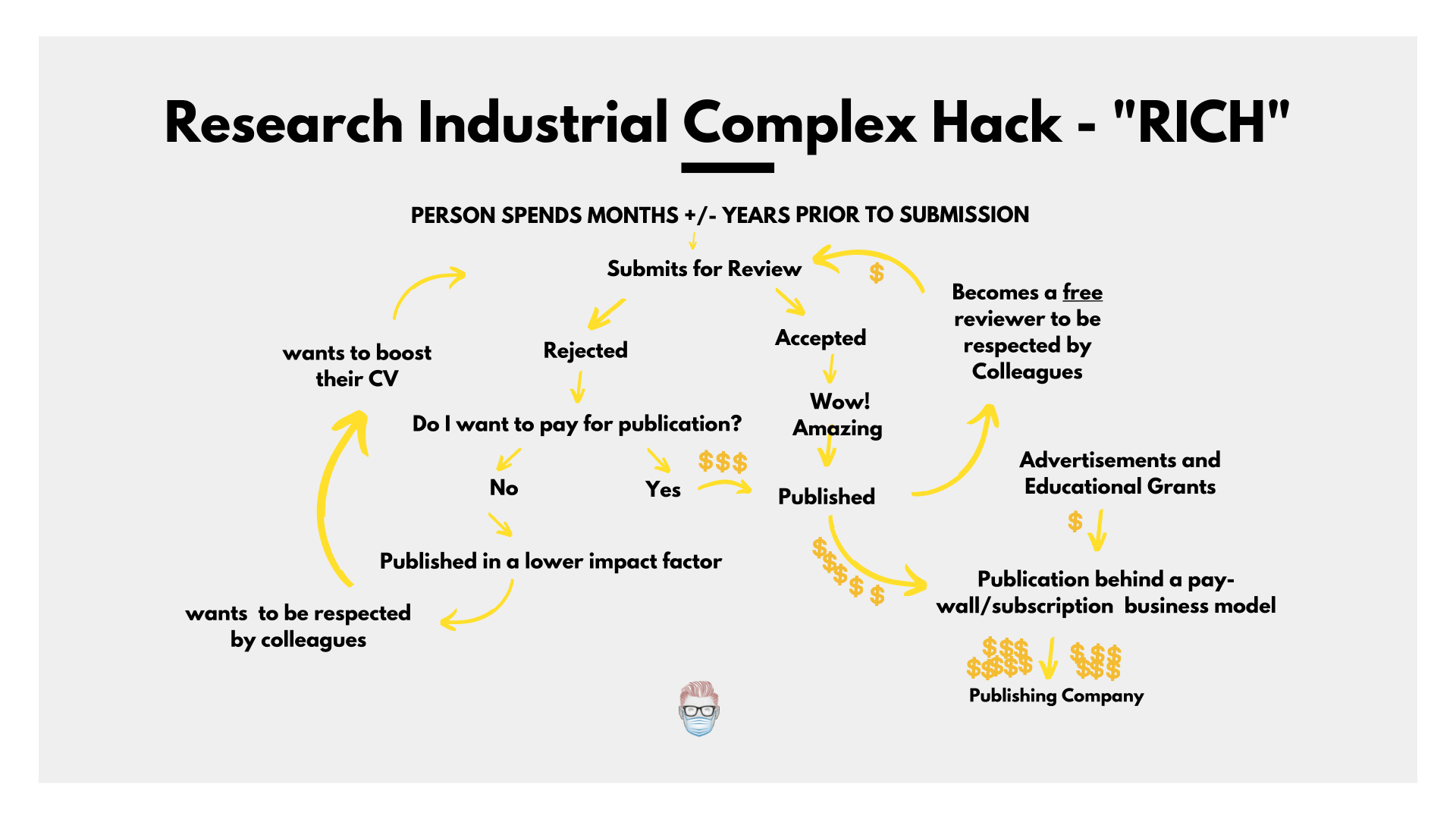 This concept of monetization/commercialization of research is consistent with P'Fella previously described "RICH COMPLEX - Research Industrial Complex Hack". Mirrored on the similar concepts of the Military-Industrial Complex, this is how to works...
