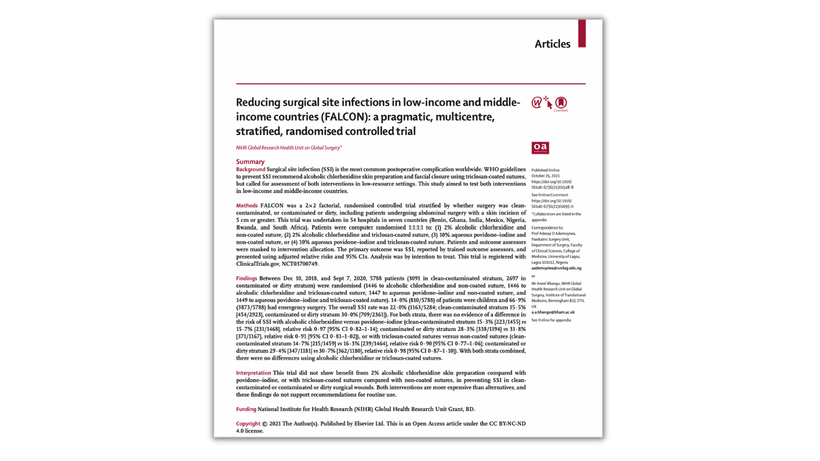 - Methods: abdominal surgery with incision > 5 cm randomized into 2% alcoholic chlorhexidine or povidoneβiodine